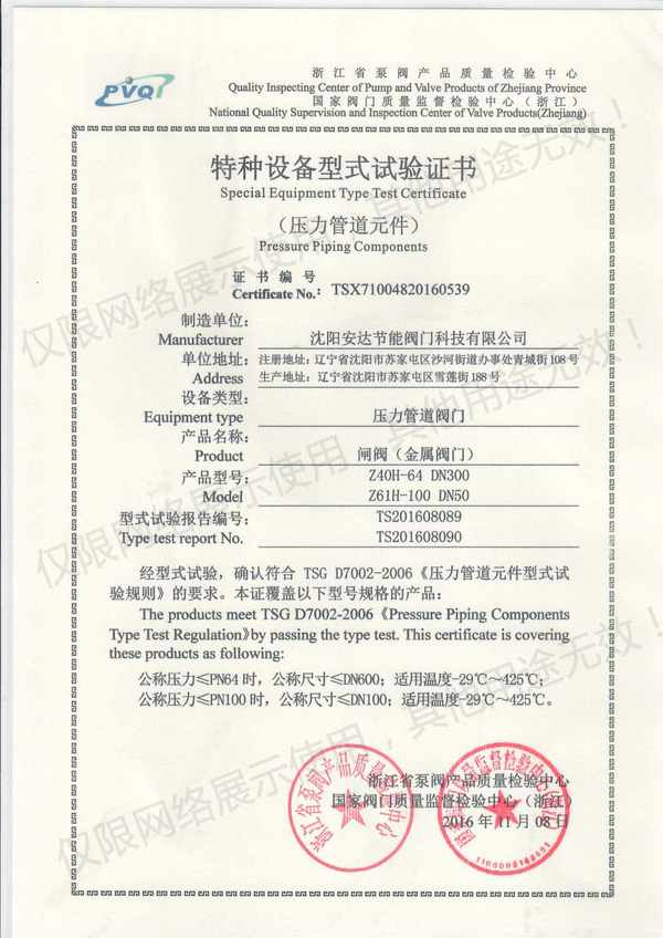 中華人民共和國特種設(shè)備只奧許可證(壓力管道閥門)